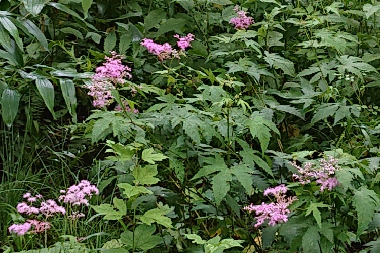 少し画質が悪いですが…シモツケソウです。連日の雨でグチャグチャすぎて近付けず。ピンク色でモコモコしているように見える可愛いお花です。この、モコモコは雄しべだそうです。雄しべが長いので、毛が生えたような、モコモコしているような感じに見えます。晴れた日に近付けるようになったら、接写してみたいと思います!