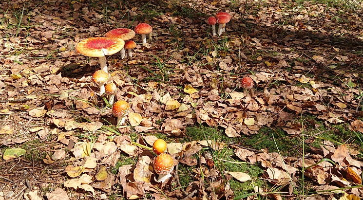 ベニテングタケが道のように群生していました♪可愛らしさと、この群生の仕方に爆笑してしまいました。ちなみに毒きのこです。ここら辺の地域では、昔毒抜きをして食べたとか…。恐ろしくて私にはできません!!(笑)
