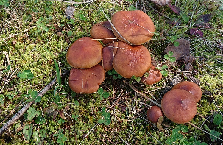 こちらはハナイグチというきのこです。長野県?ではジコボウ、リコボウと呼びます。きのこ採りの定番です。食べられるきのこなので、大人気です。おろししょうゆや、味噌汁に入れて食べることが多いです。