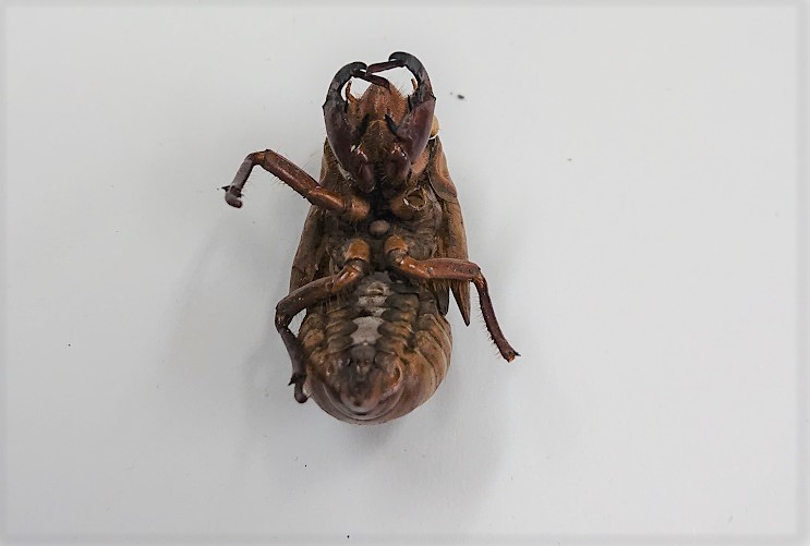 お腹のところにでっぱりがあるのですが、このでっぱりがあるものはクマゼミだそうです!!(クマゼミ以外にはないそうです…)ということで、この抜け殻はクマゼミ♀ということになるのですが、クマゼミは寒い地域にはあまりいないらしく、基本的に暖かいところにいるそうです。最近は、今までいないと言われていた地域でも目撃情報があるそうですが、基本的に寒い地域のここ野辺山…クマゼミであっているのか、少し自信がなくなりました(笑)